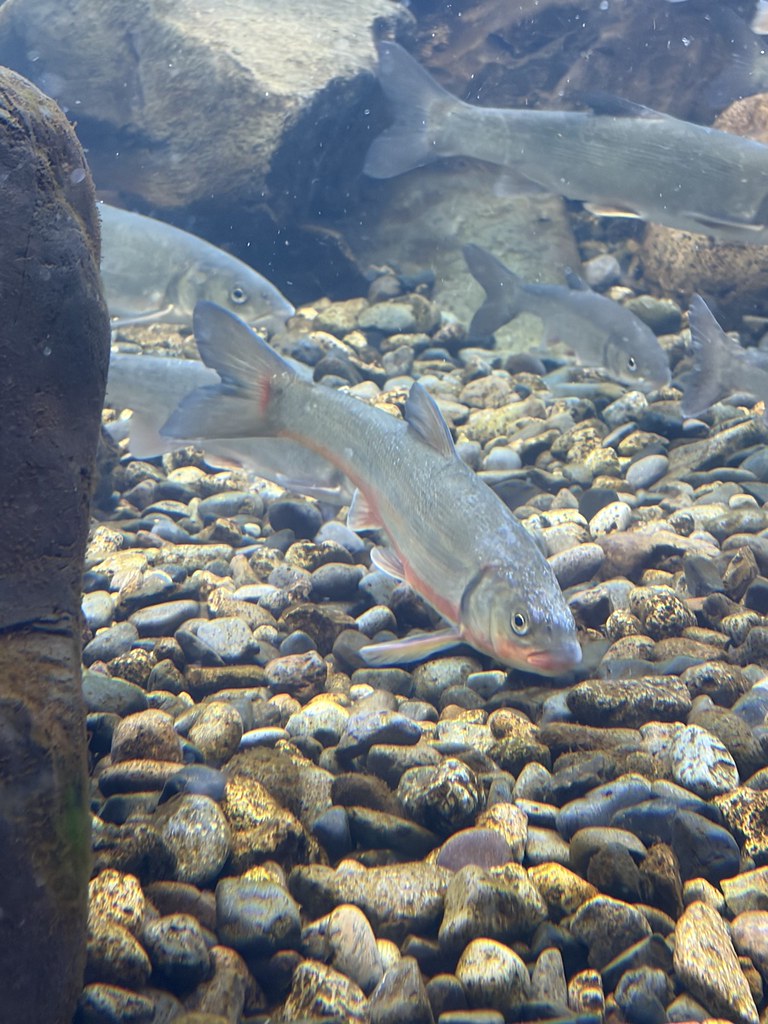 暖かくなり少しづつ春の陽気になってきています。水槽の中も春らしさが出てきました。陸上部分では「フキノトウ」「フクジュソウ」が咲き、「ネコヤナギ」が花穂(かすい)をつけています。又、水中ではややフライング気味なウグイに薄っすら婚姻色を纏っています。更に水族館入口へ続く道にも「エルタテハ」🦋や「クジャクチョウ」🦋が飛んでいることもあります。